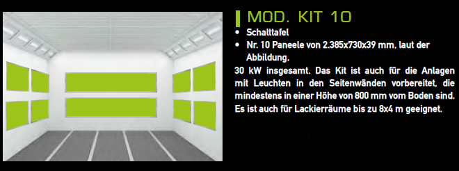 Die traditionellen Diesel- oder Gasbrenner werden durch Wärmedämmplatten mit hoher Emissionskapazität ersetzt, welche wiederum verstärkt durch einen Strahlungskern und ausschließlich mit elektrischer Energie versorgt, ein schnelles Erreichen hoher Temperaturen und die direkte Übertragung der Wärme auf das zu lackierende Werkstück ermöglichen ohne dafür die Luft erhitzen zu müssen. Mit dieser Lösung werden kostenintensive Wärmeverluste sowie unnötige Energietransfers vermieden und eine Verbrennung ist dabei nicht vorgesehen. Daraus